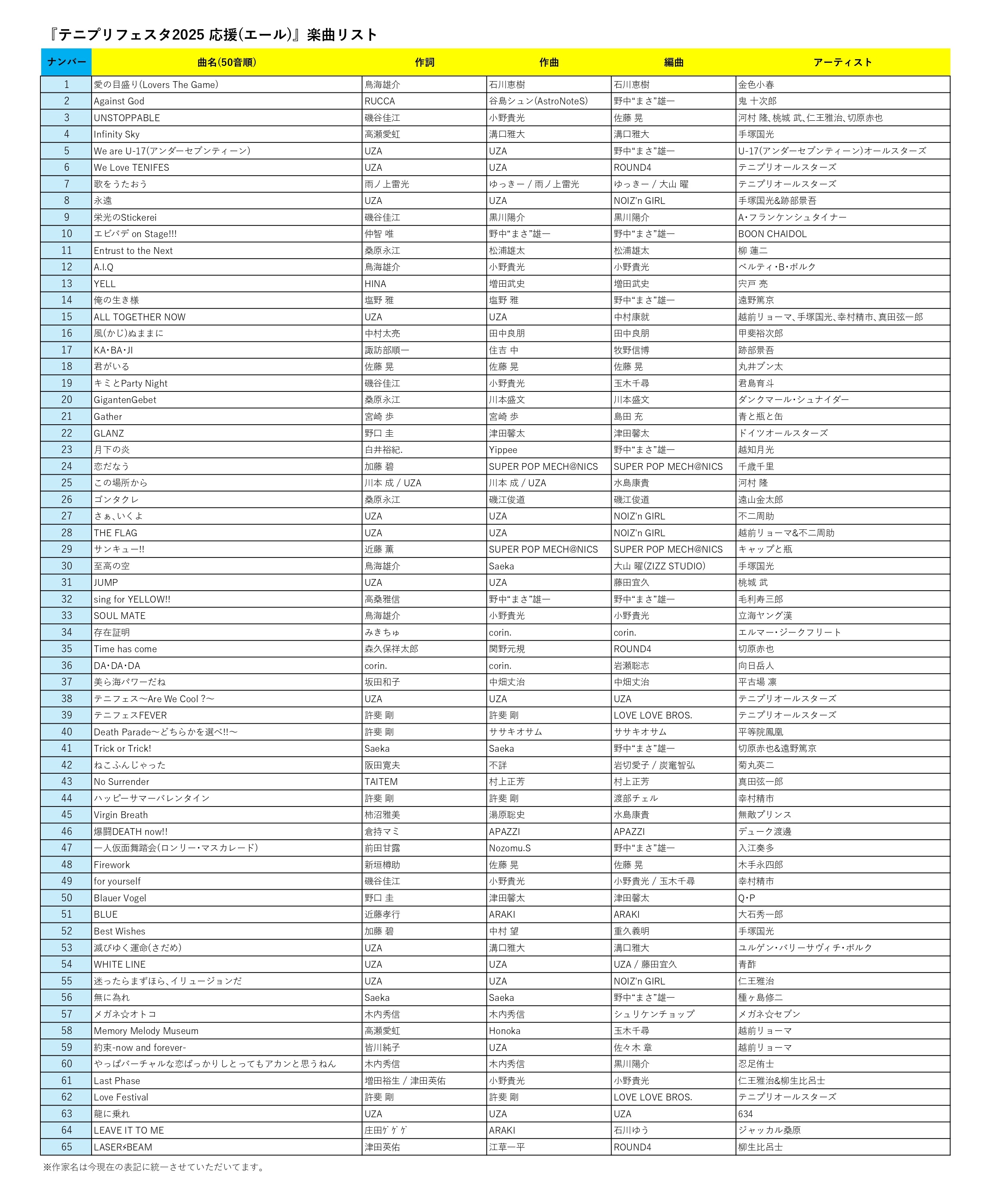 『テニプリフェスタ2025 応援(エール)』で披露された楽曲の音楽リストを公開!
